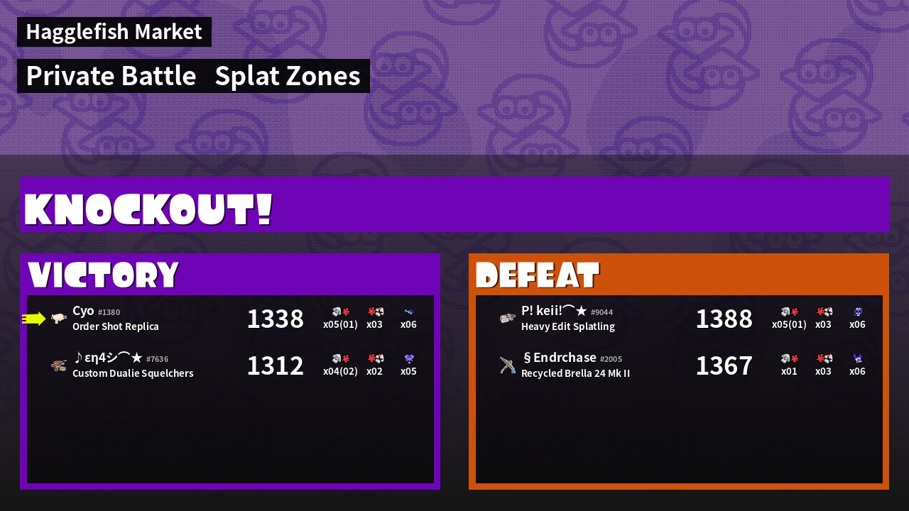 | Mode | Splat Zones - Private Battle | ||