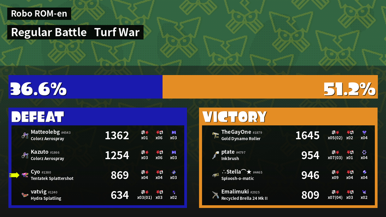 | Mode | Turf War - Regular Battle | ||