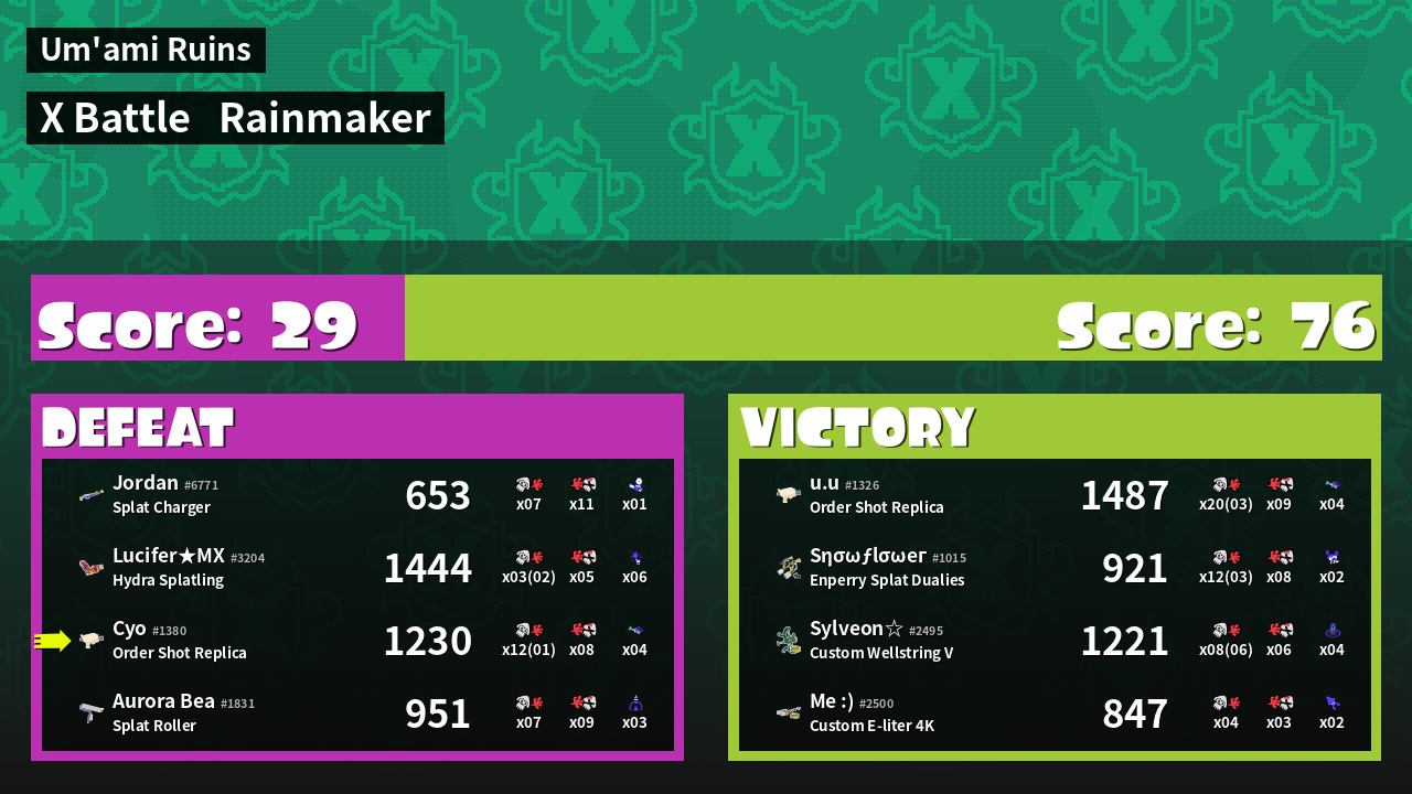 | Medals | #1 Overall Splatter #1 Enemy Splatter #2 Turf Inker | ||