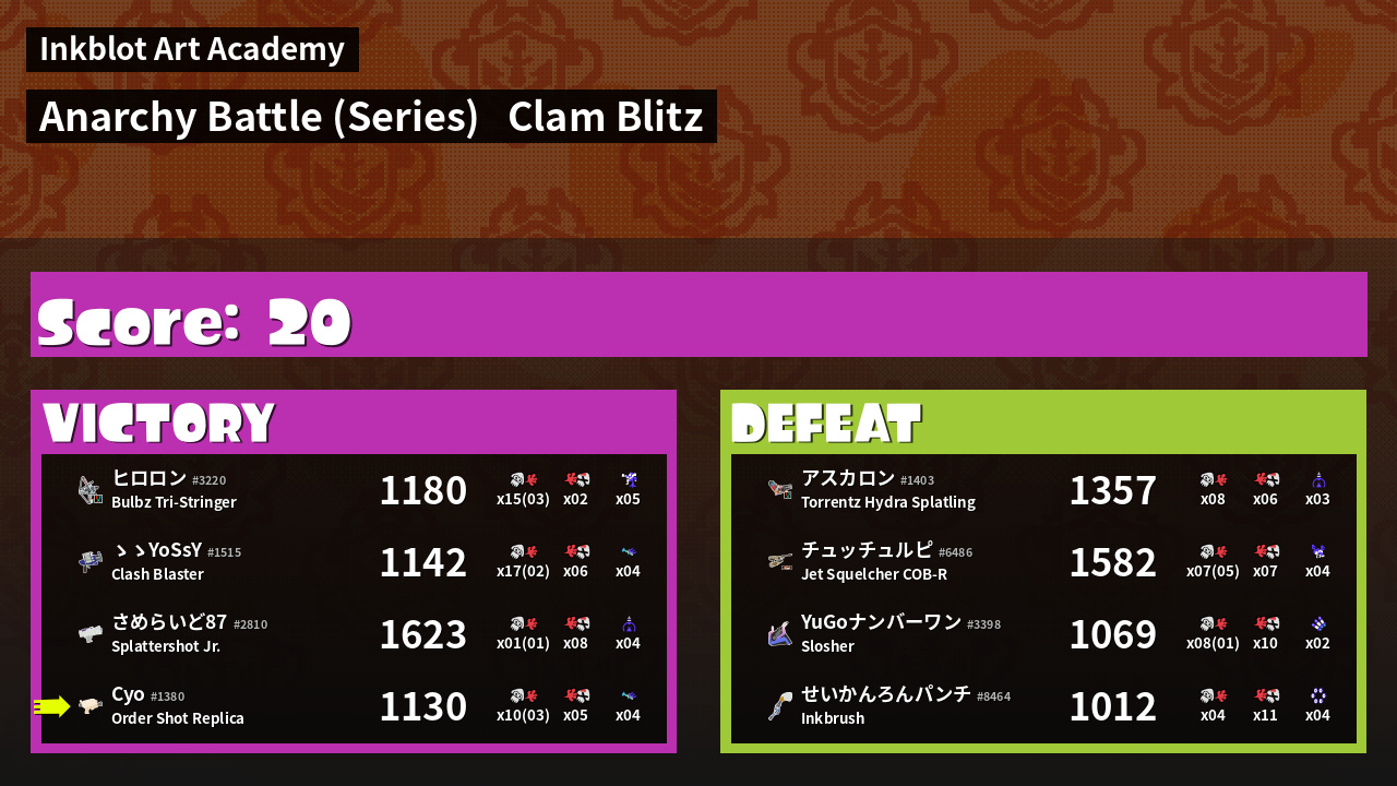 | Mode | Clam Blitz - Anarchy Battle (Series) | ||