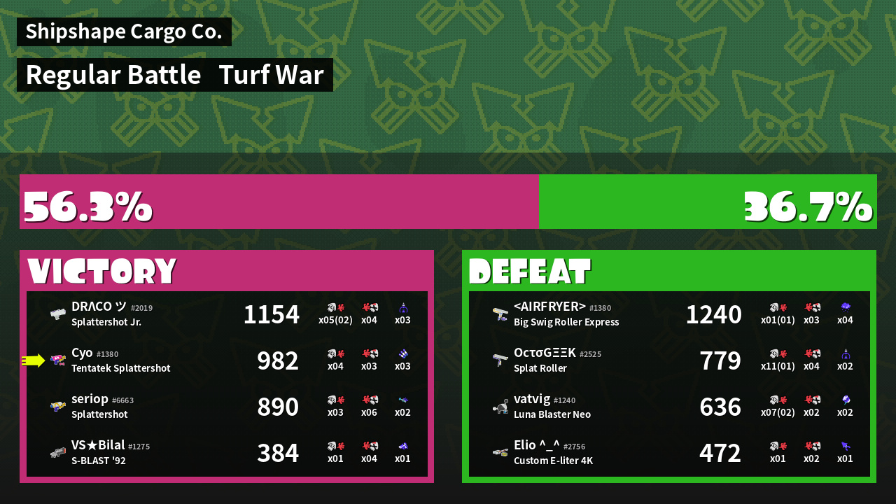 | Mode | Turf War - Regular Battle | ||