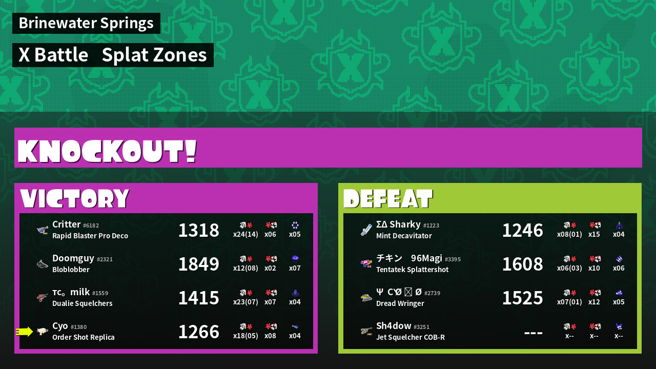 | Mode | Splat Zones - X Battle | ||