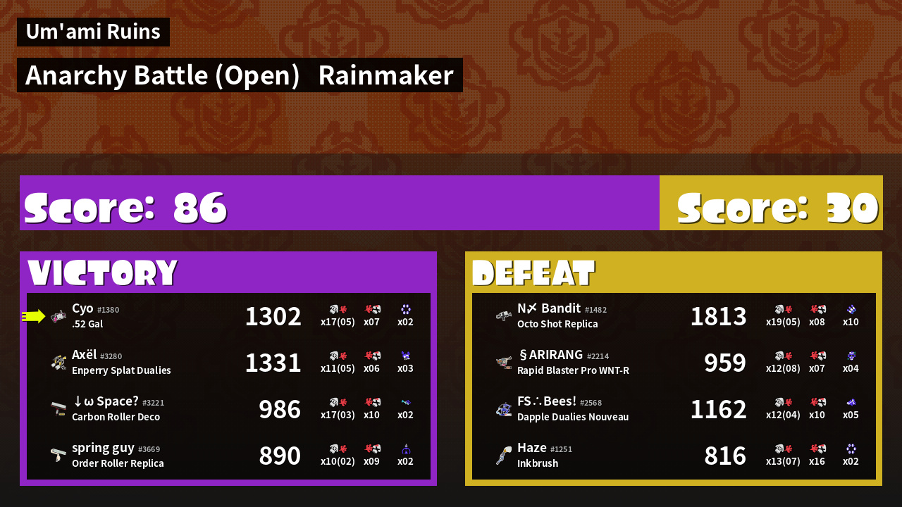 | Mode | Rainmaker - Anarchy Battle (Open) | ||