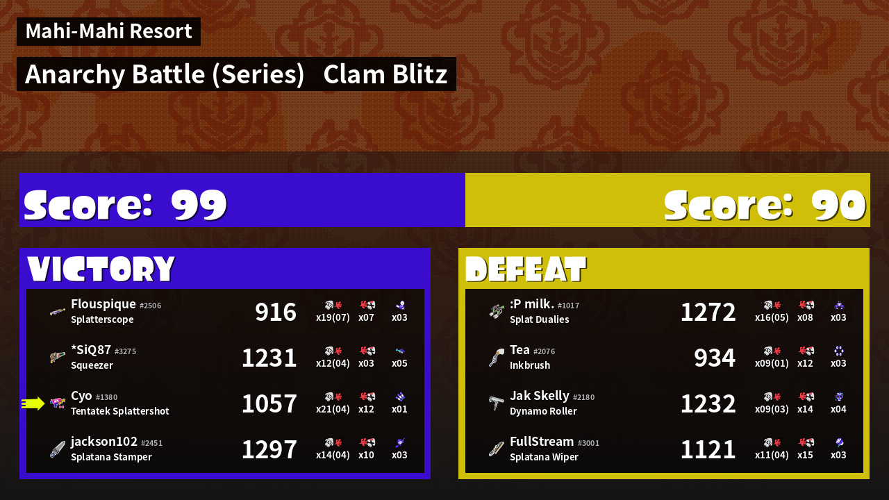 | Mode | Clam Blitz - Anarchy Battle (Series) | ||