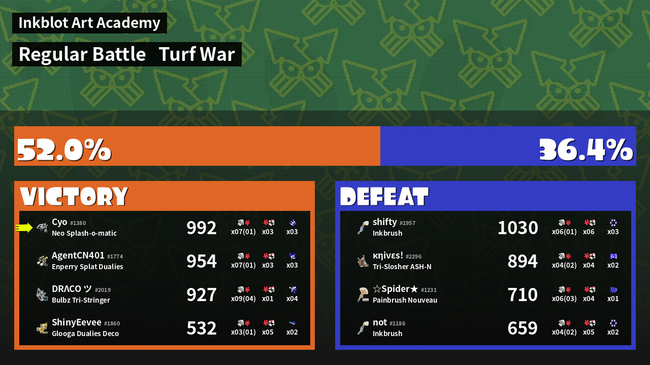 | Medals | #1 Turf Inker #1 Popular Target #1 Enemy Splatter | ||