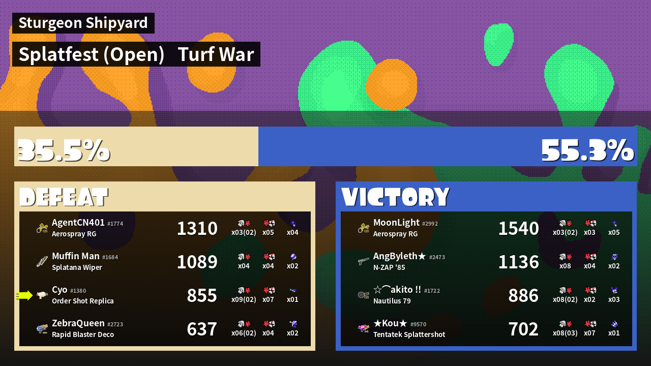 | Mode | Turf War - Splatfest (Open) | ||