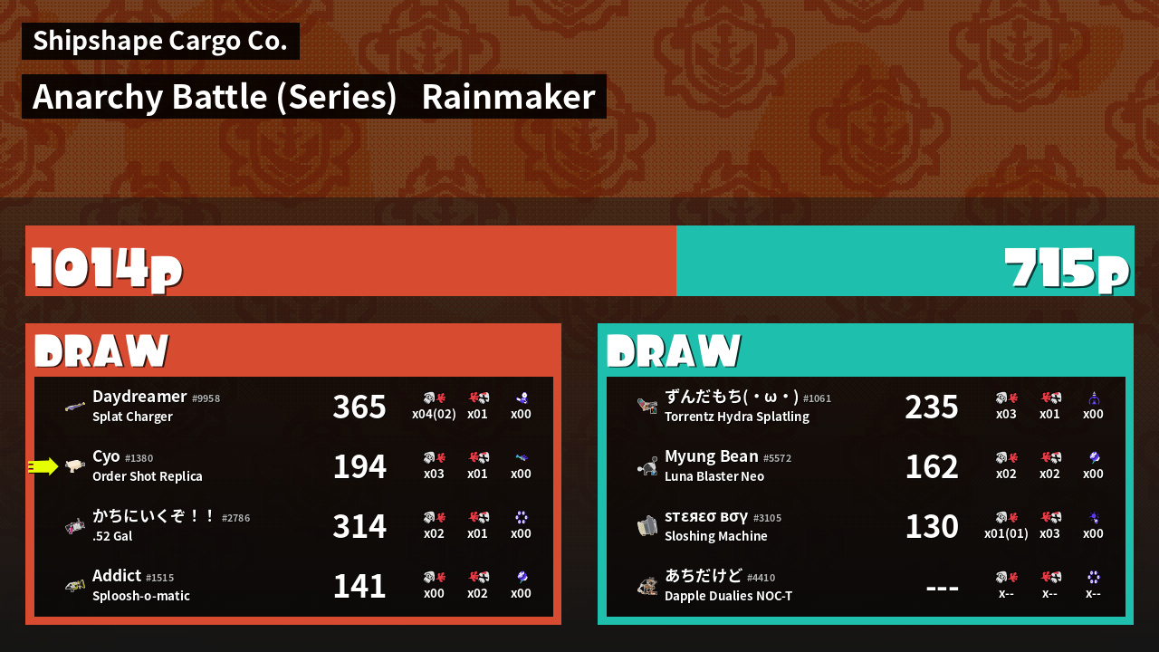 | Mode | Rainmaker - Anarchy Battle (Series) | ||