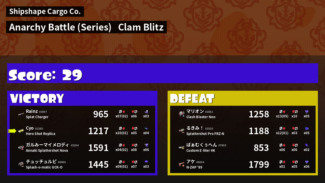 | Mode | Clam Blitz - Anarchy Battle (Series) | ||