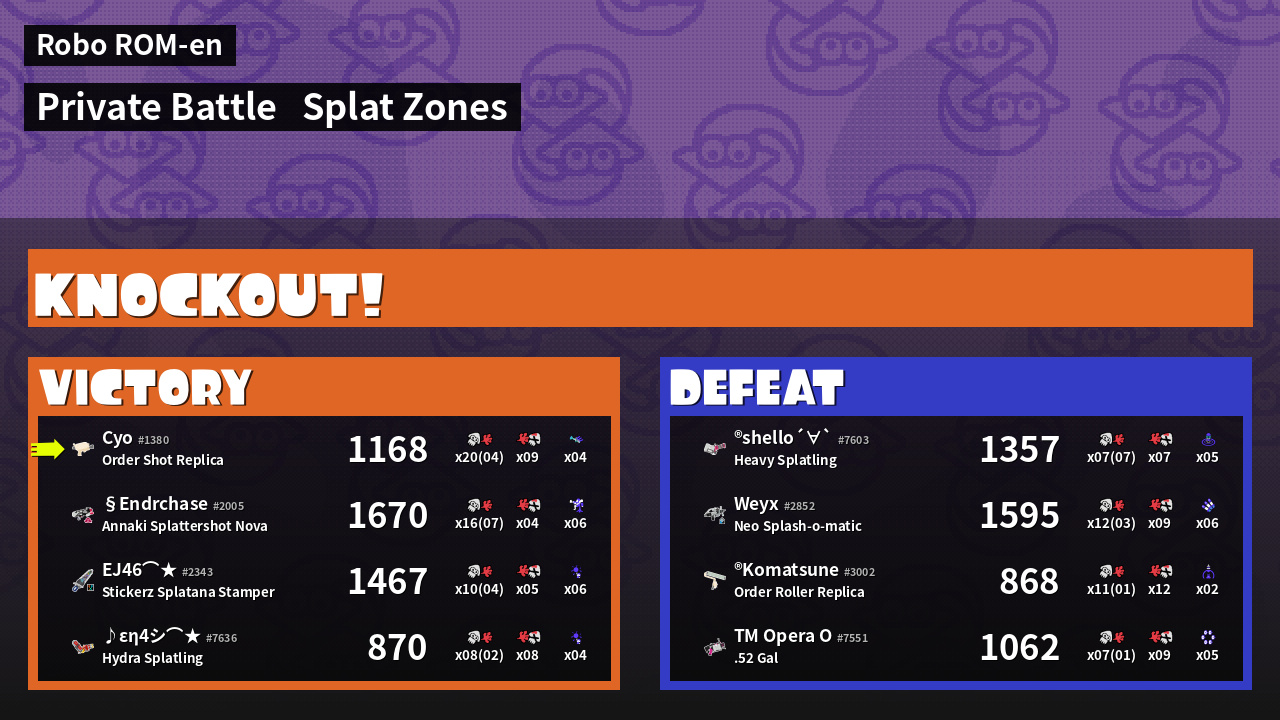 | Medals | #1 Overall Splatter #1 Splat Zone Guard #1 Popular Target | ||