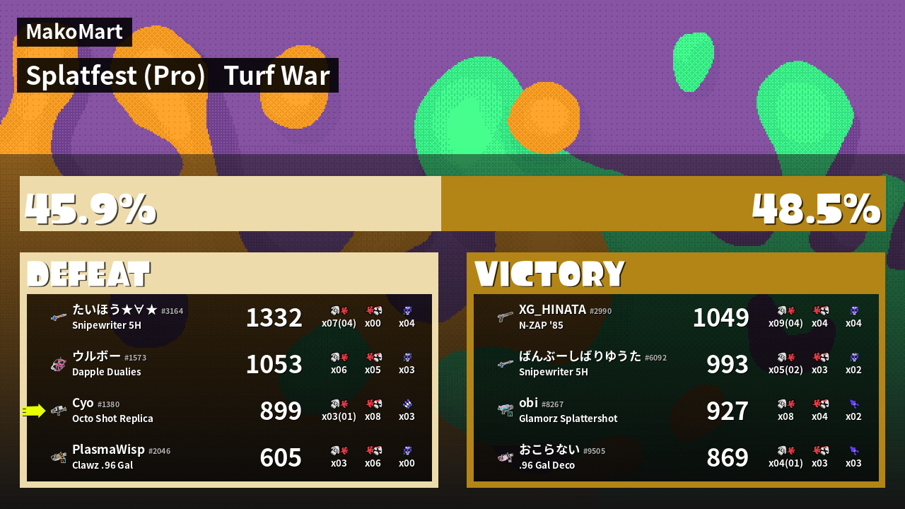 | Medals | #2 Enemy-Base Inker #2 Super Jump Spot #2 Splat Assister | ||