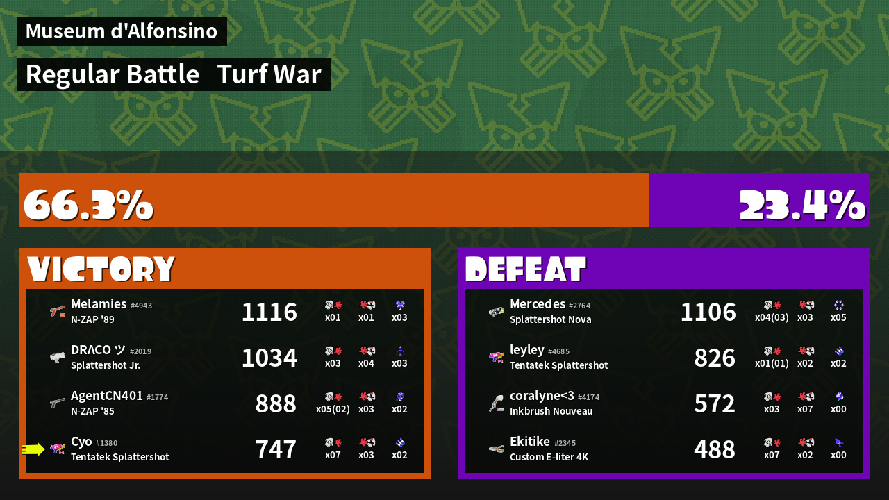 | Medals | #1 Overall Splatter #1 Popular Target #1 Enemy-Base Inker | ||