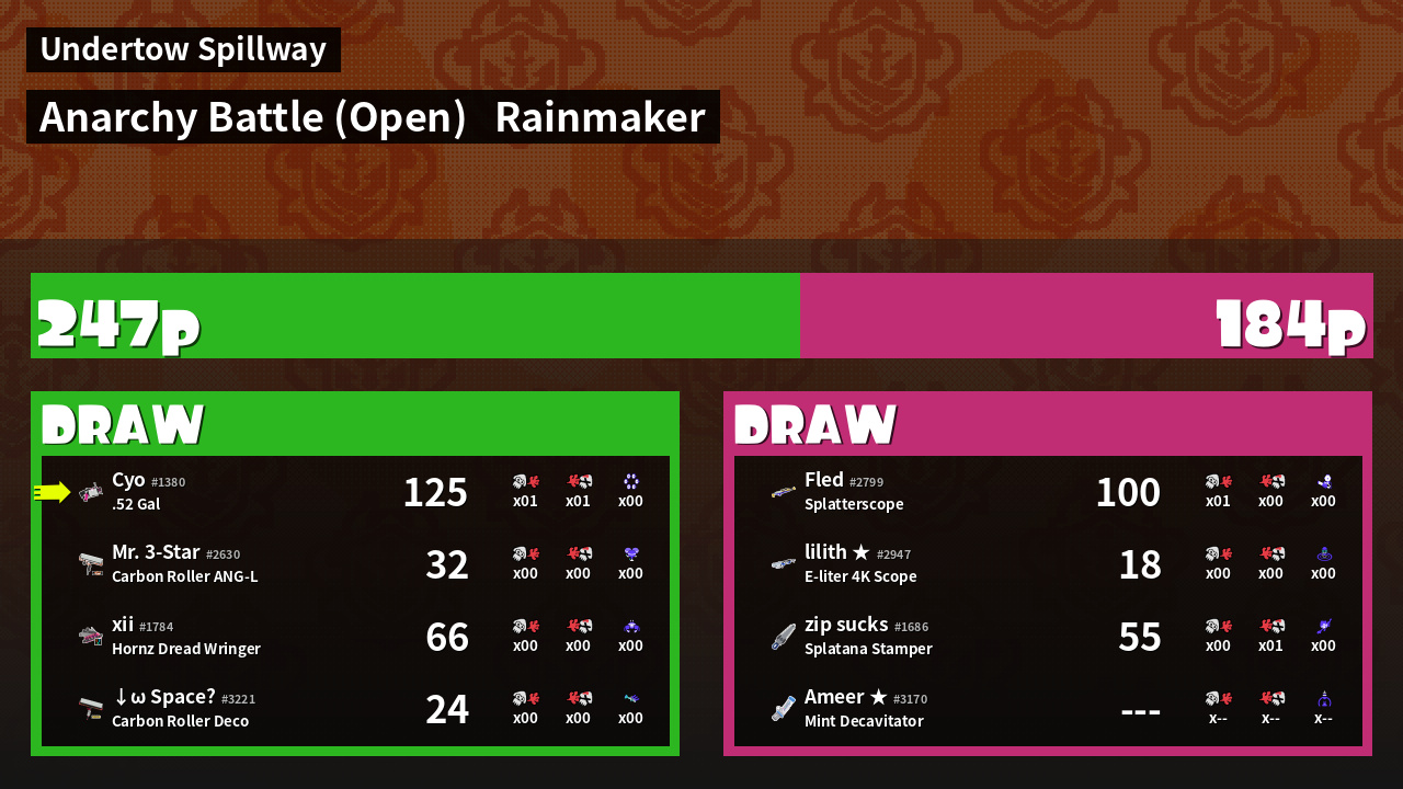 | Mode | Rainmaker - Anarchy Battle (Open) | ||