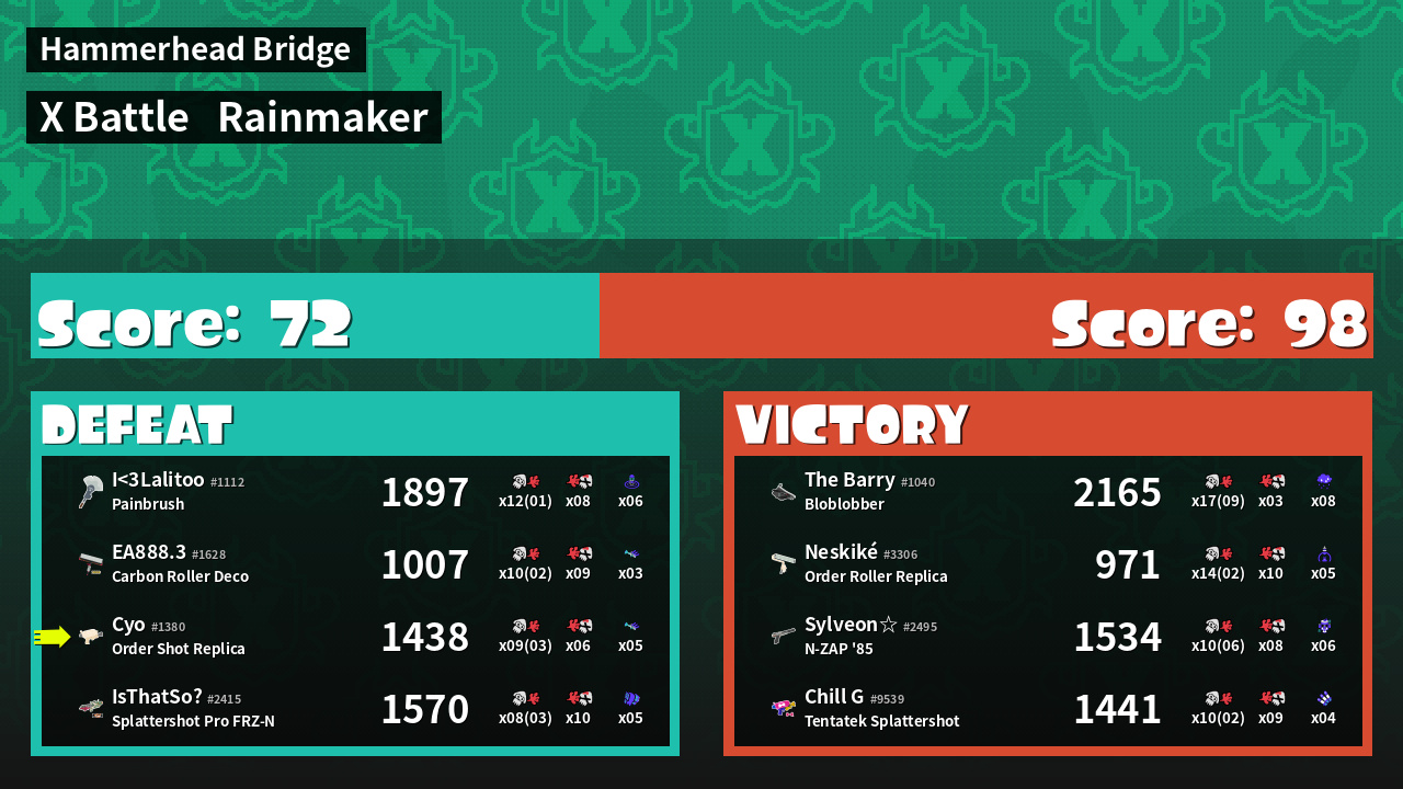 | Medals | #1 Splat Assister #1 Rainmaker Stopper #1 Trizooka User | ||