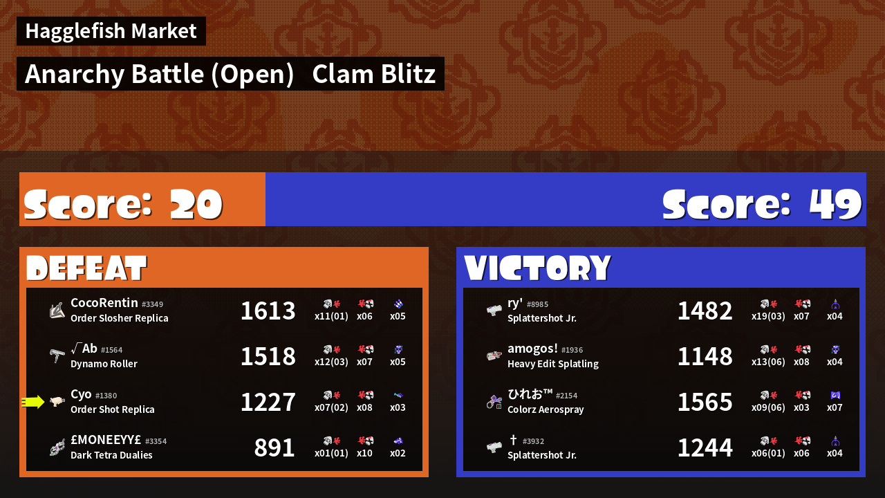 | Mode | Clam Blitz - Anarchy Battle (Open) | ||