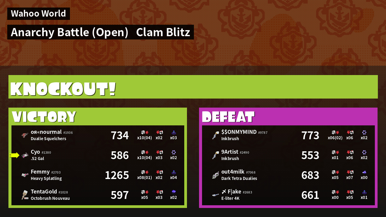 | Mode | Clam Blitz - Anarchy Battle (Open) | ||