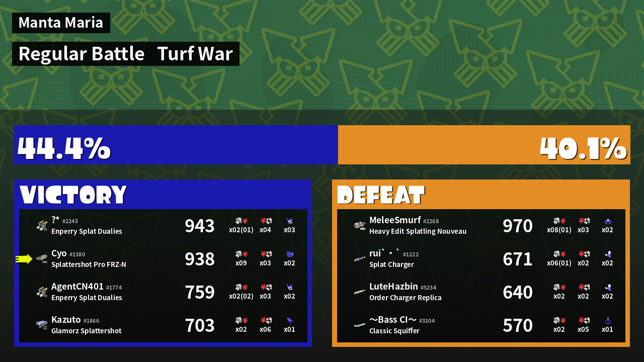 | Mode | Turf War - Regular Battle | ||