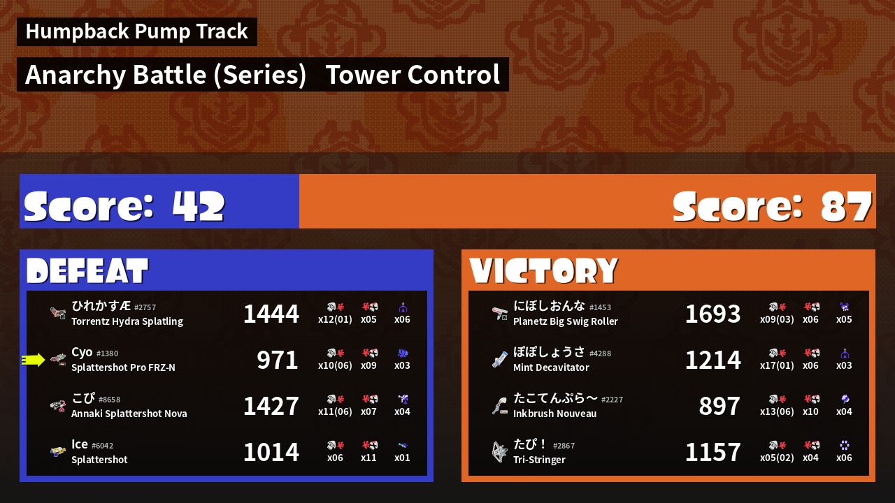 | Medals | #1 Super Jump Spot #1 Splat Assister #1 Tower Stopper | ||