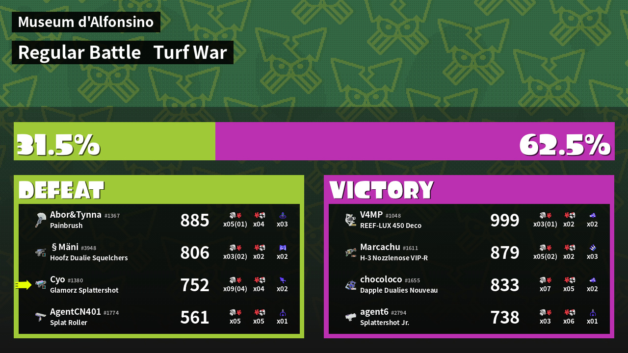 | Weapon | Glamorz Splattershot ( Burst Bomb / Kraken Royale) | ||