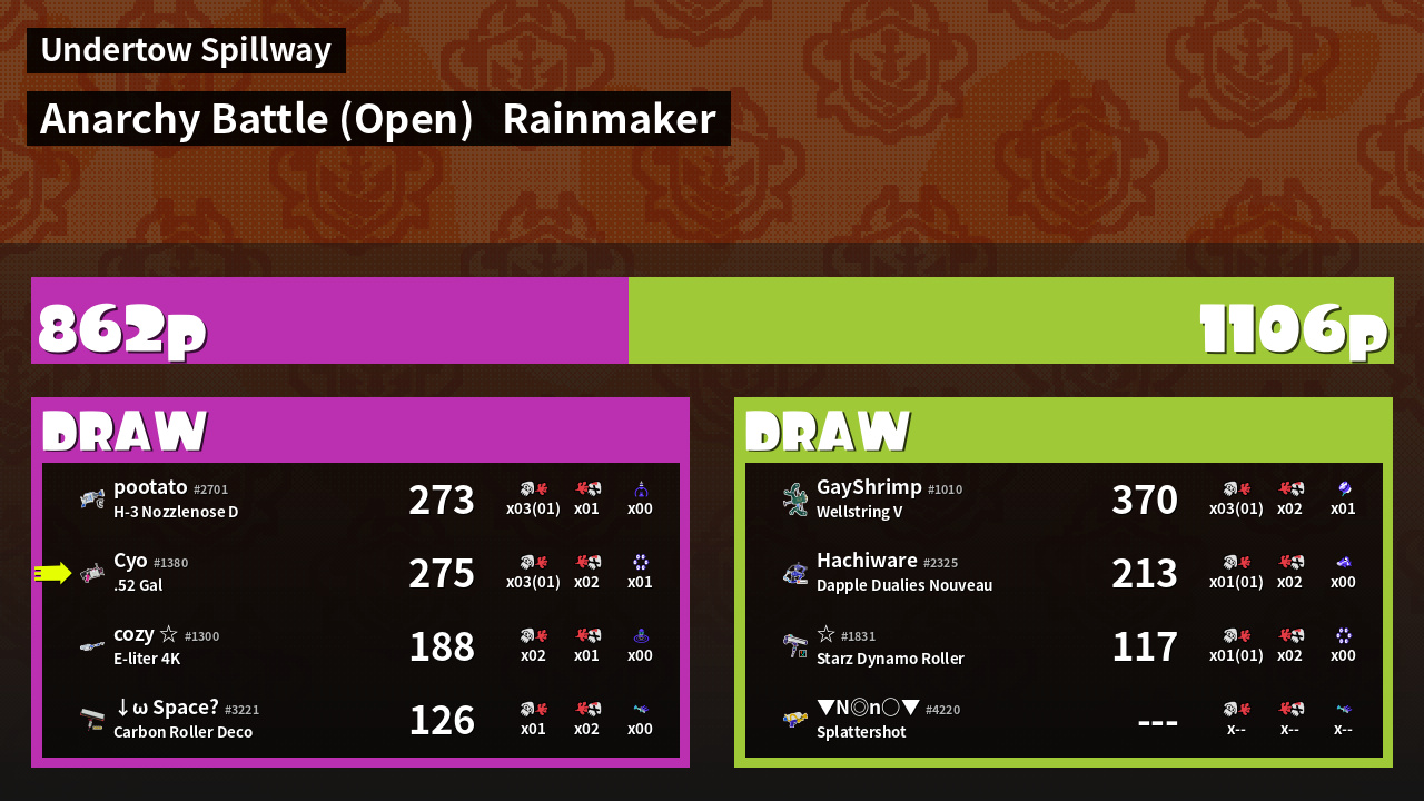 | Mode | Rainmaker - Anarchy Battle (Open) | ||