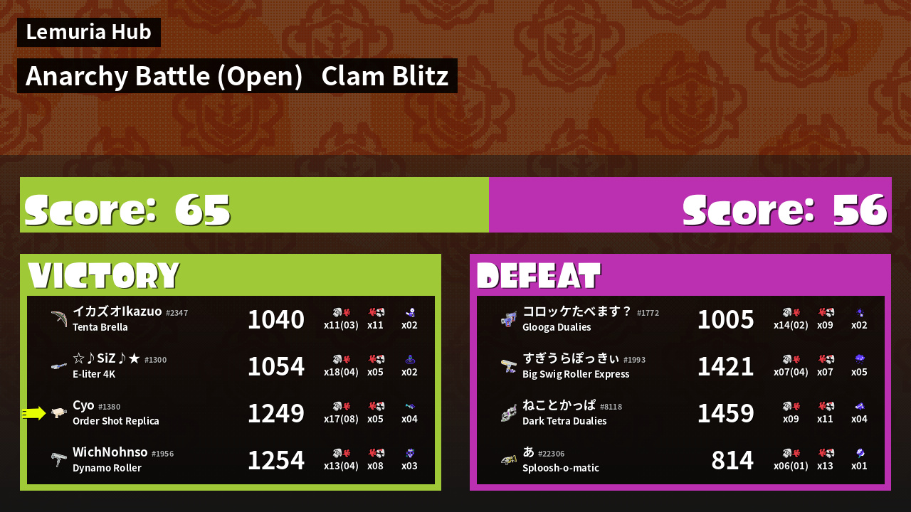 | Mode | Clam Blitz - Anarchy Battle (Open) | ||