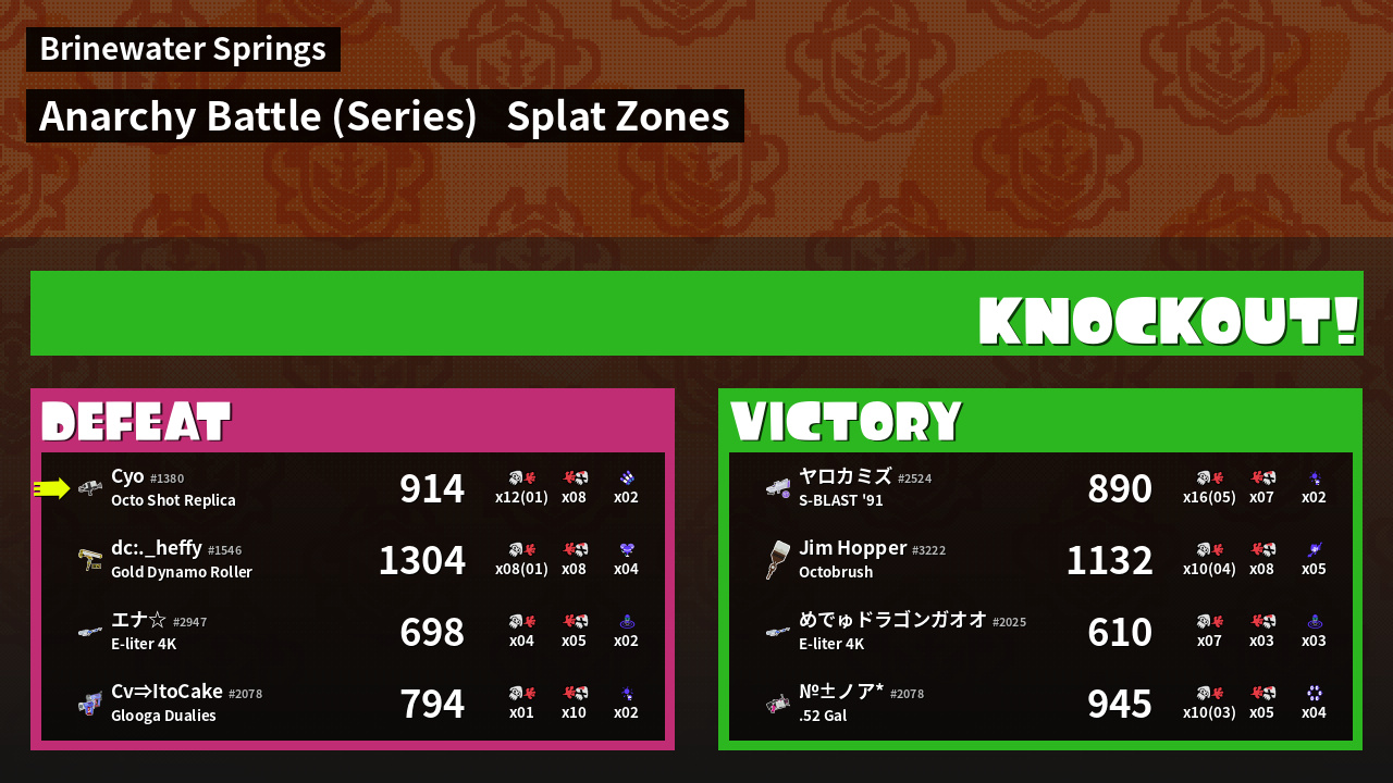 | Mode | Splat Zones - Anarchy Battle (Series) | ||
