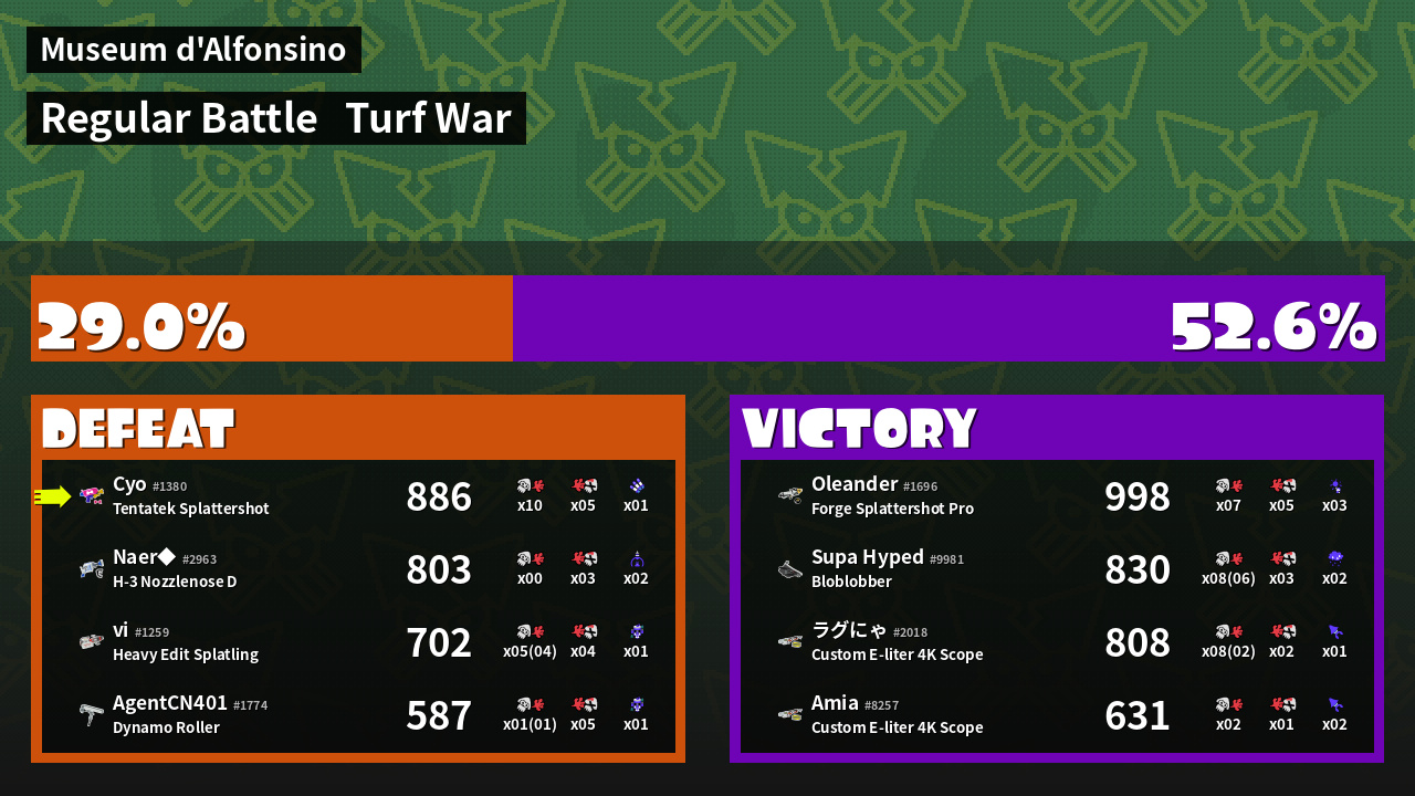| Mode | Turf War - Regular Battle | ||