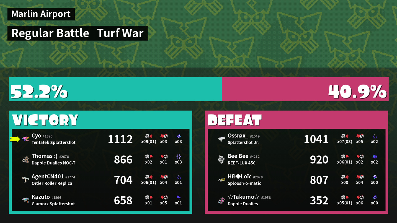 | Mode | Turf War - Regular Battle | ||