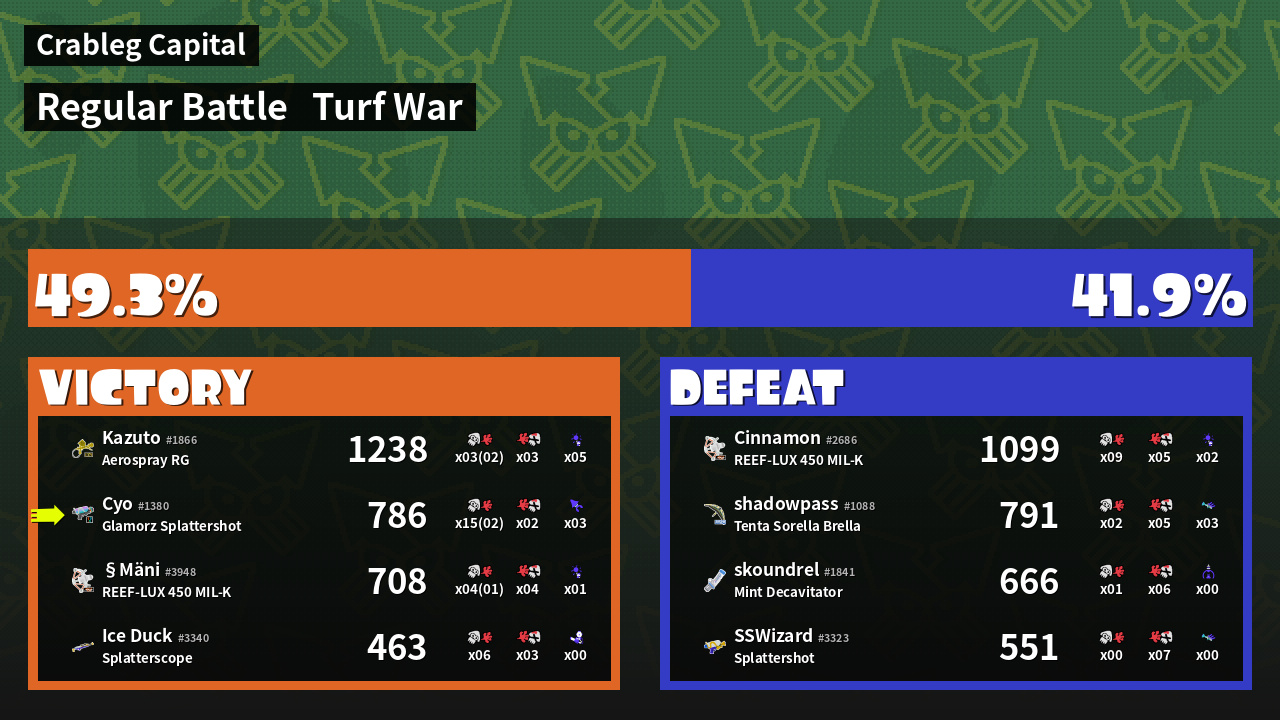| Mode | Turf War - Regular Battle | ||