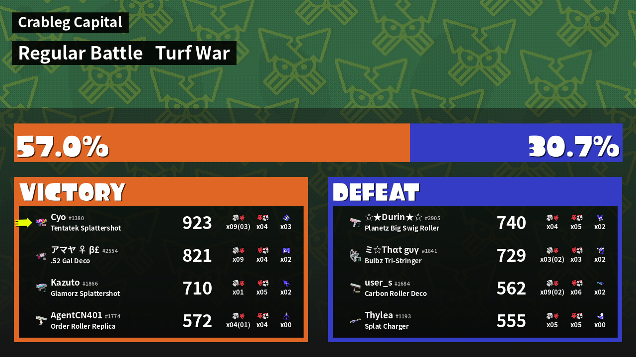 | Mode | Turf War - Regular Battle | ||