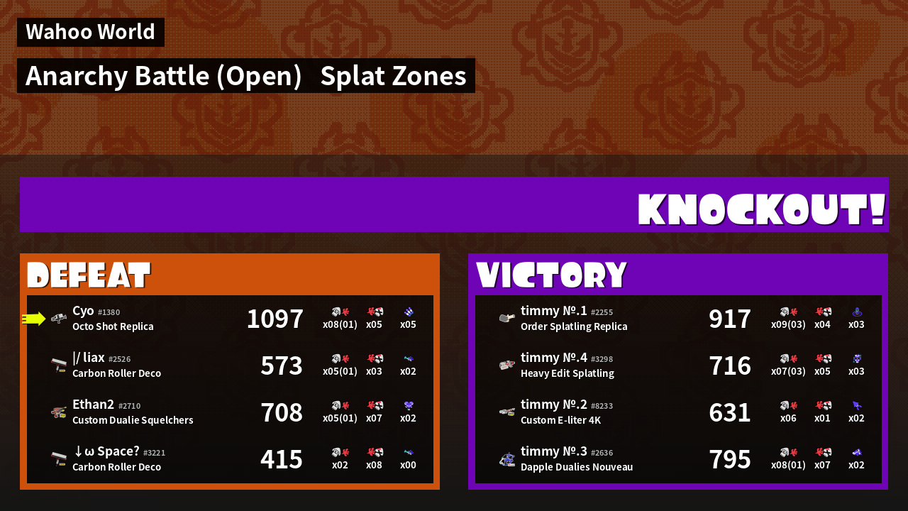 | Mode | Splat Zones - Anarchy Battle (Open) | ||