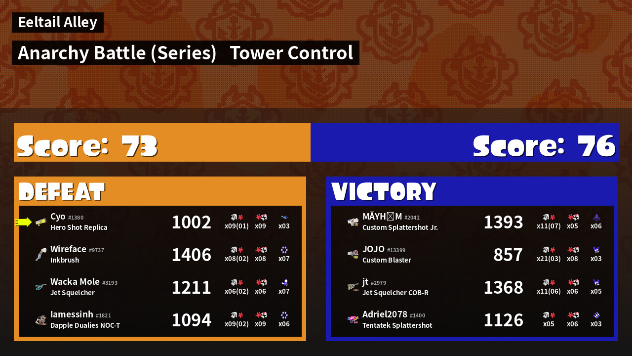 | Mode | Tower Control - Anarchy Battle (Series) | ||