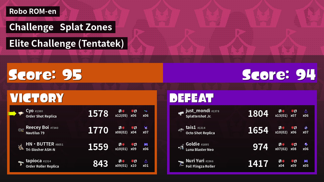 | Medals | #1 Overall Splatter #1 Splat Zone Guard #1 Popular Target | ||
