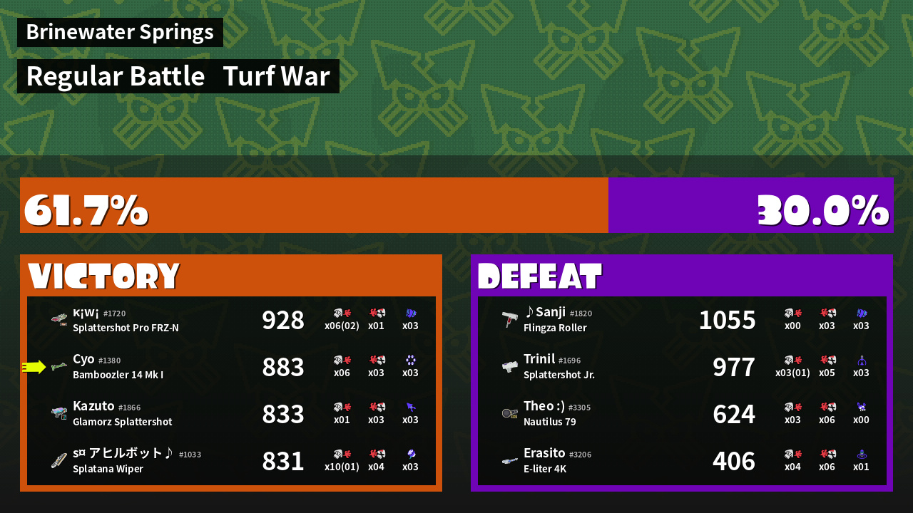 | Medals | #1 Base Defender #1 Killer Wail 5.1 User #2 Overall Splatter | ||