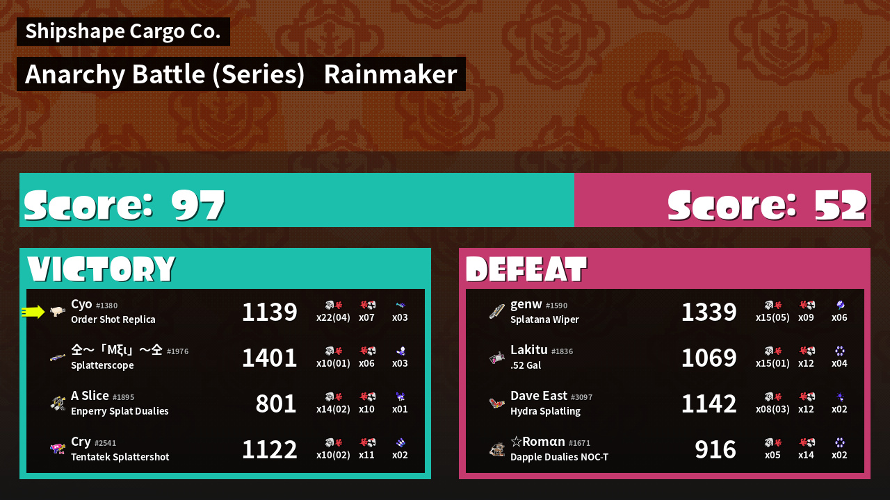 | Mode | Rainmaker - Anarchy Battle (Series) | ||