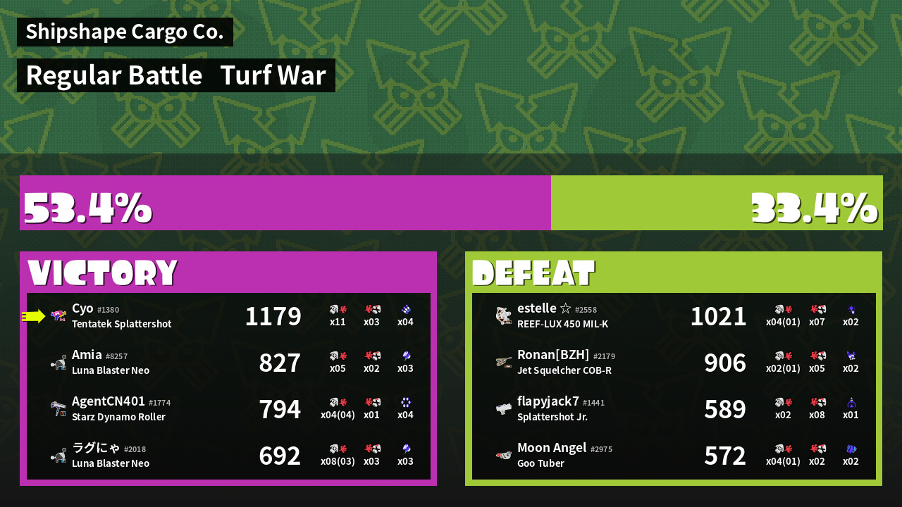 | Medals | #1 Overall Splatter #1 Turf Inker #1 Enemy-Base Inker | ||