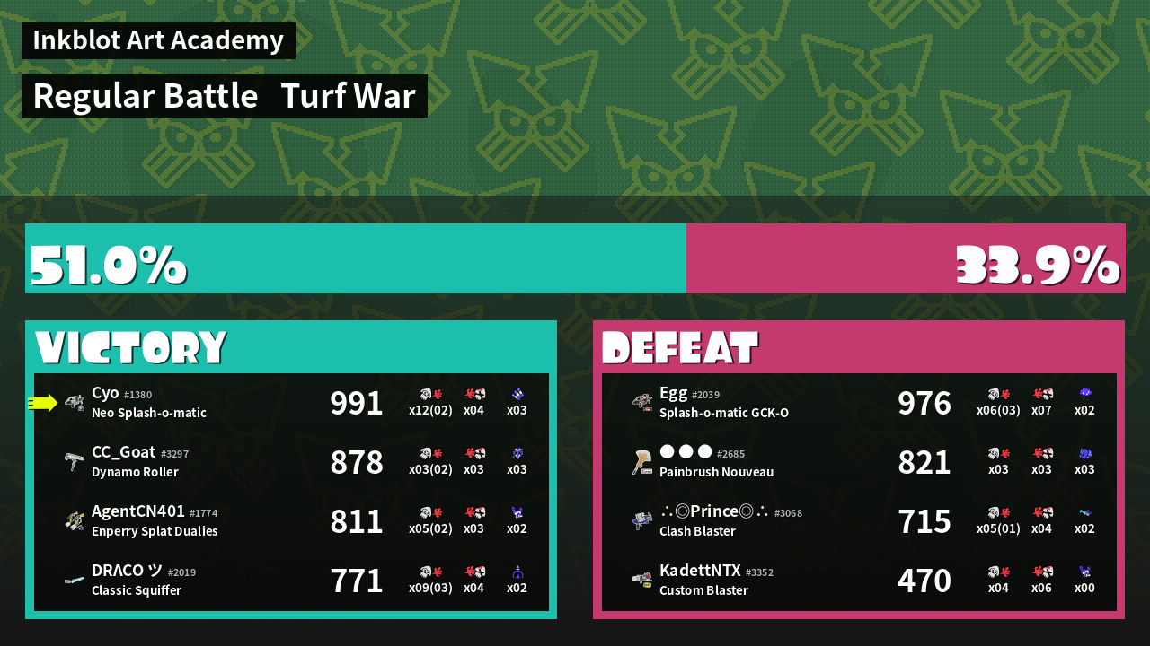 | Medals | #1 Overall Splatter #1 Turf Inker #1 Enemy Splatter | ||