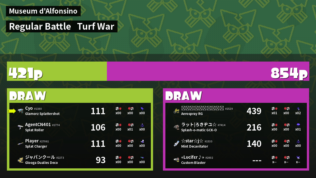 | Mode | Turf War - Regular Battle | ||