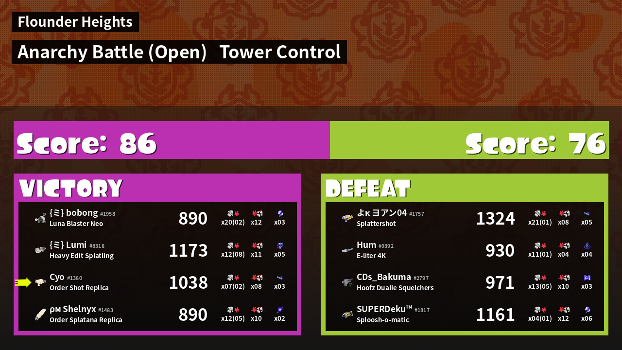 | Mode | Tower Control - Anarchy Battle (Open) | ||