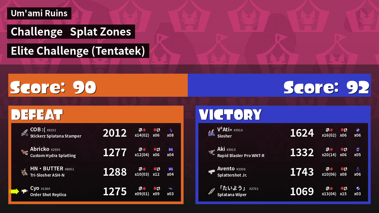| Mode | Splat Zones - Challenge | ||