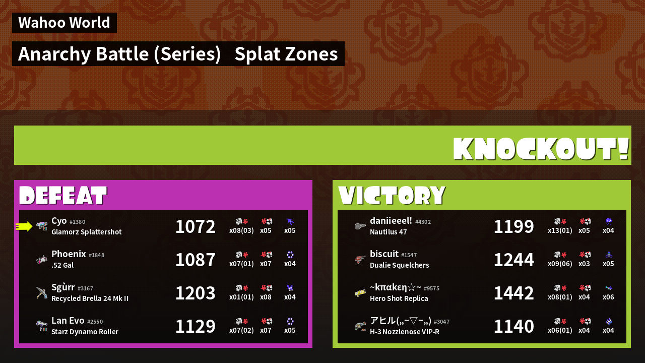 | Mode | Splat Zones - Anarchy Battle (Series) | ||