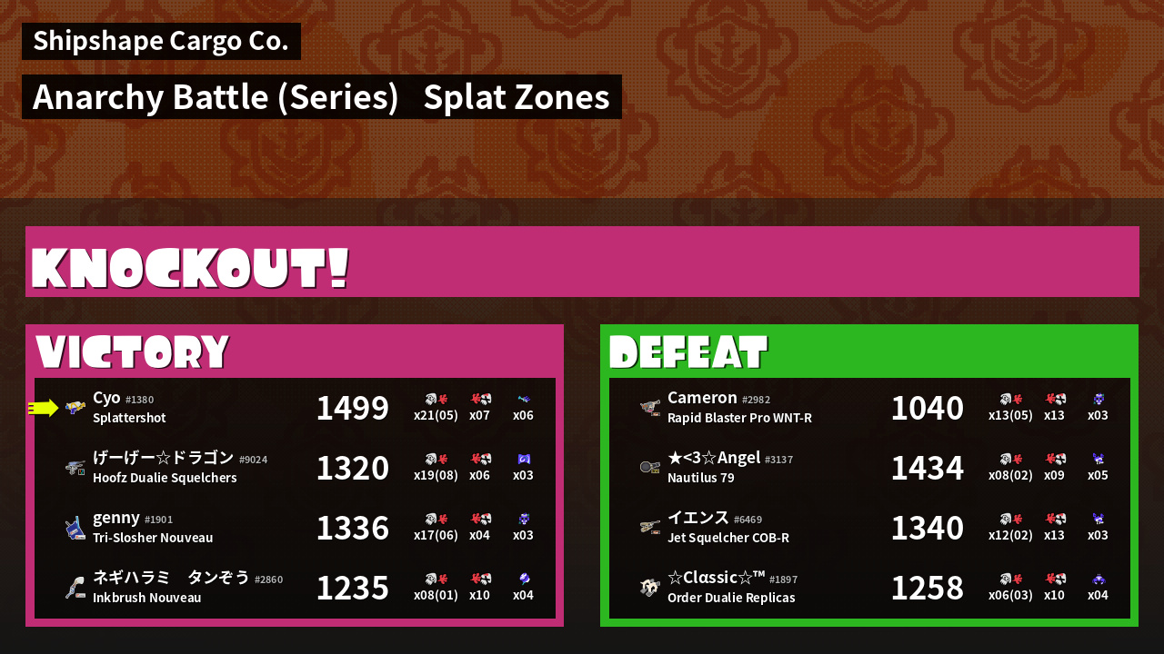 | Mode | Splat Zones - Anarchy Battle (Series) | ||