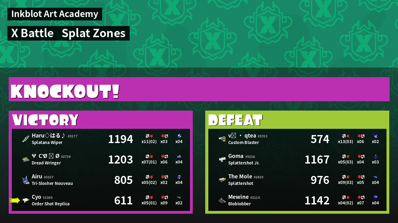 | Mode | Splat Zones - X Battle | ||