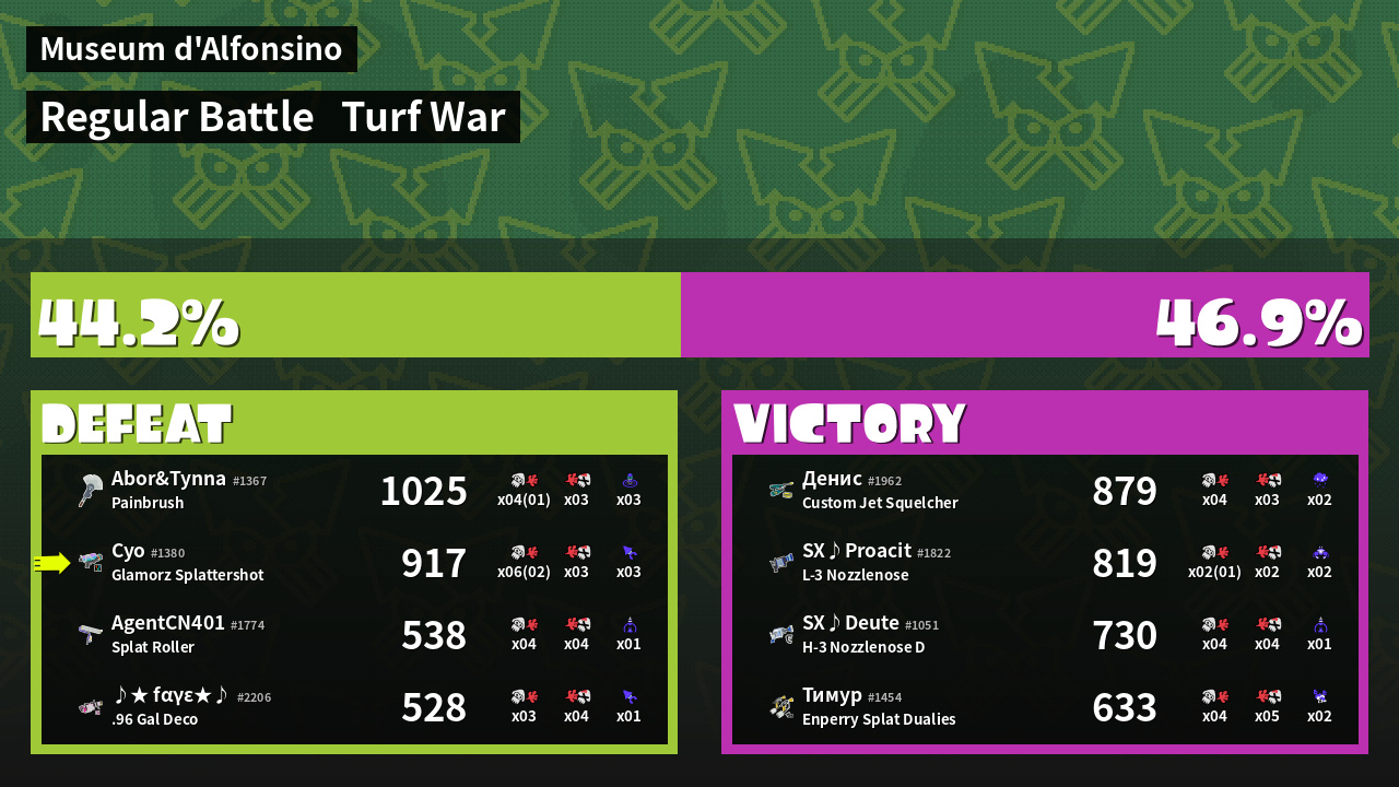 | Mode | Turf War - Regular Battle | ||