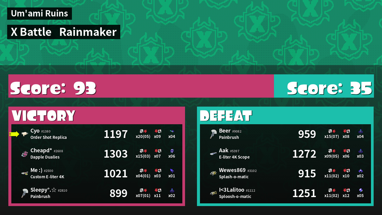 | Medals | #1 Overall Splatter #1 Score Booster Record-Score Setter | ||