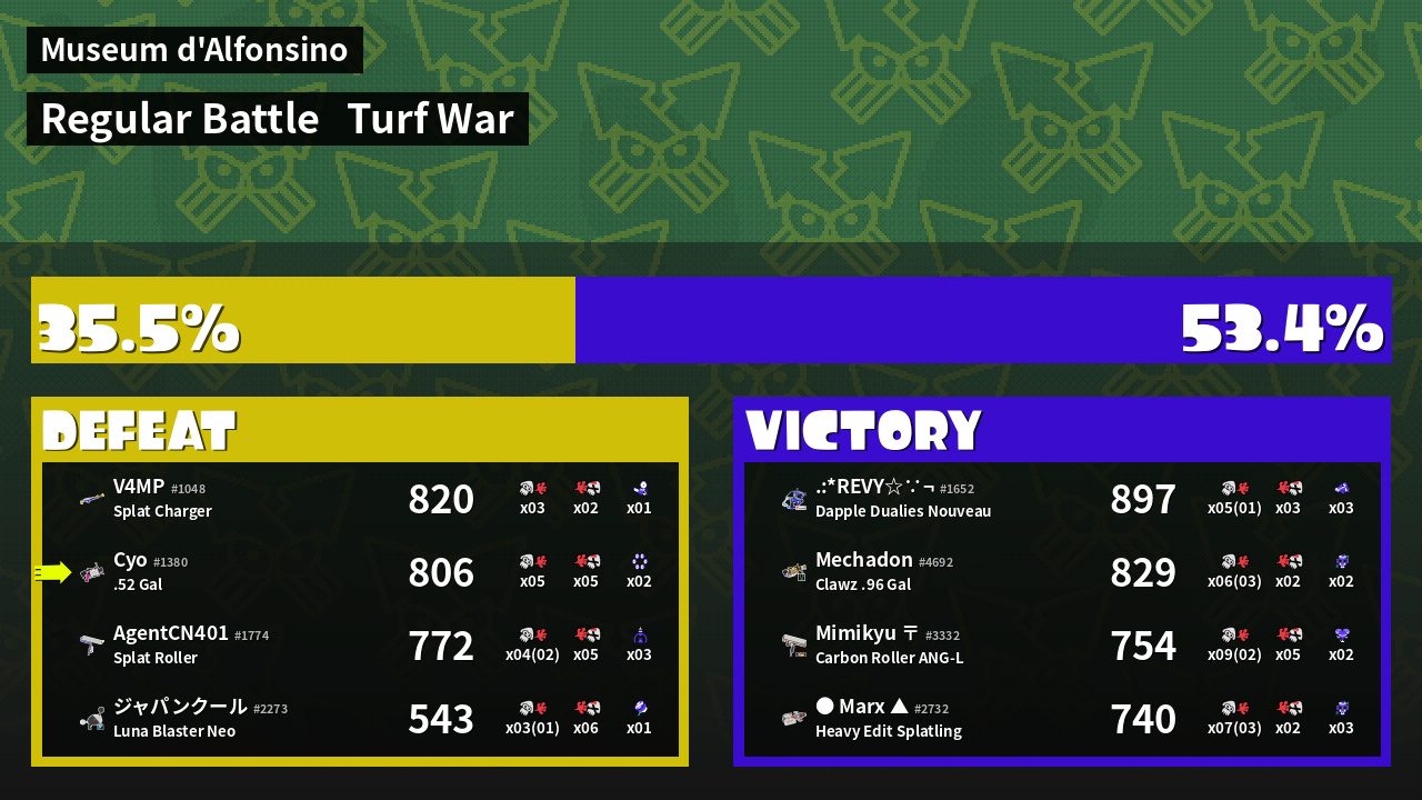 | Mode | Turf War - Regular Battle | ||