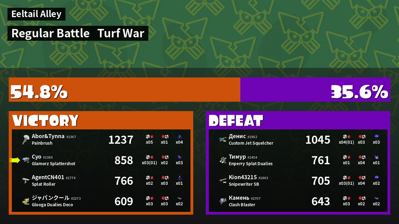 | Medals | #1 Splat Assister #1 Kraken Royale User #2 Overall Splatter | ||