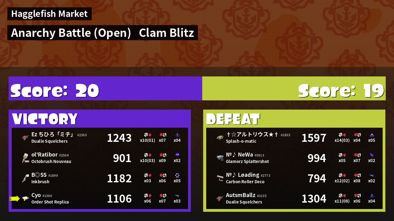 | Mode | Clam Blitz - Anarchy Battle (Open) | ||