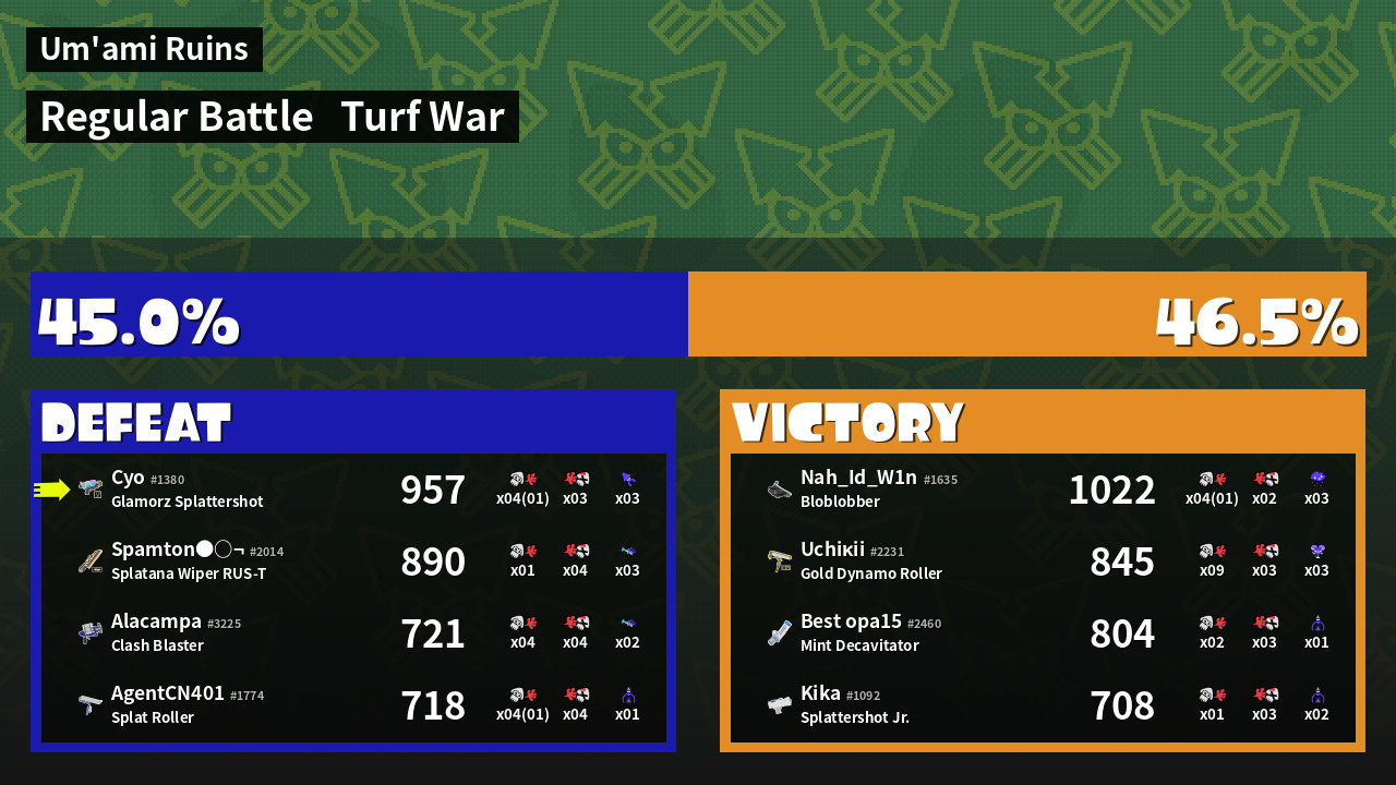 | Mode | Turf War - Regular Battle | ||