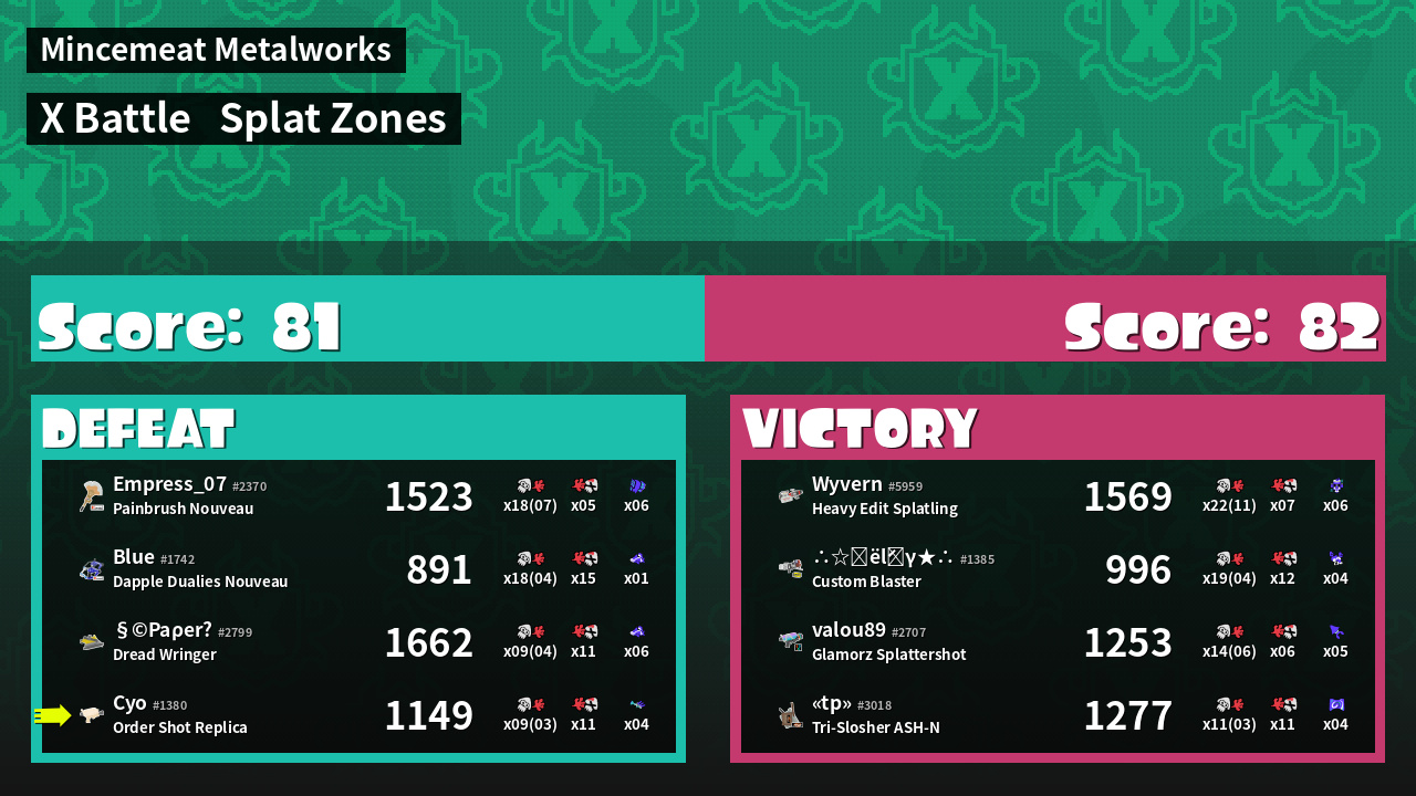 | Medals | #1 Popular Target #1 Trizooka User #2 Splat Zone Inker | ||