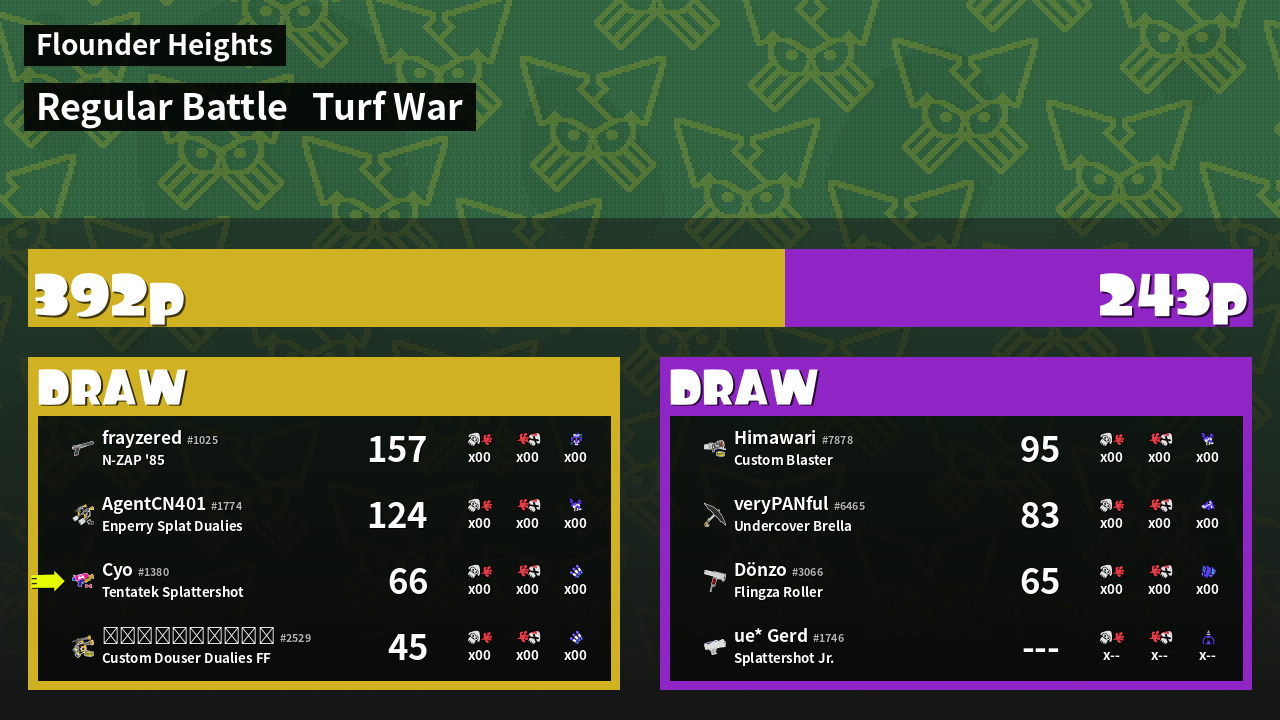 | Weapon | Tentatek Splattershot ( Splat Bomb / Triple Inkstrike) | ||